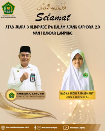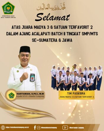 Bandar Lampung, MTsN 1 (Humas) – Senin, 04 November 2024 telah di umumkan di lapangan upacara MTsN 1 Bandar Lampung bahwa Tim Tari Kreasi kembali mengharumkan nama sekolah. Pada ajang Sapphoria 2.0 yang diselenggarakan oleh MAN 1 Bandar Lampung. Tim Baca Selengkapnya