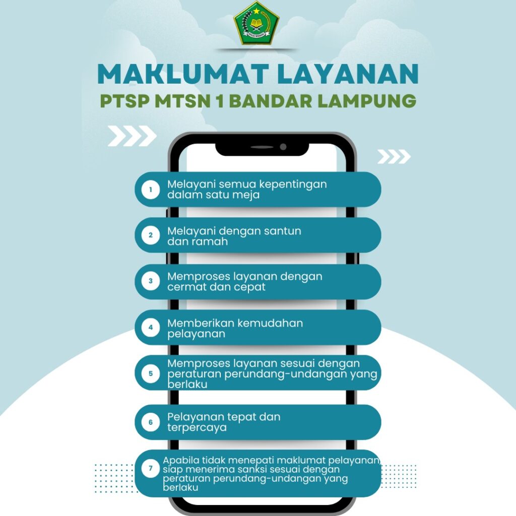 Maklumat Pelayanan PTSP MTsN 1 Bandar Lampung sebagai berikut: